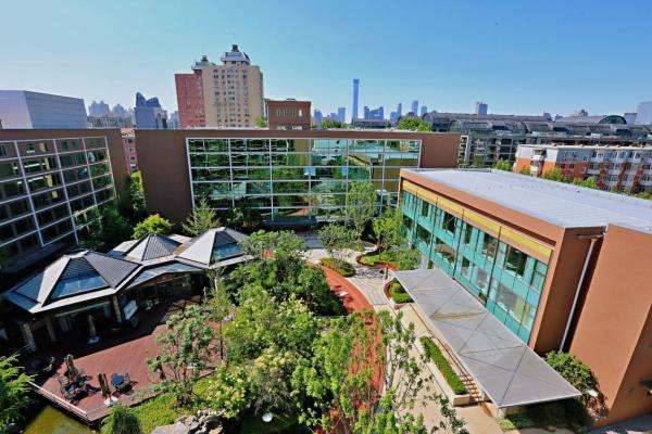 最让人眼前一亮的是它的室外庭院,足足有4000平米,还是日式风格,布置得特别精致,有园林小品、健身器材、步行走道,还有露天凉椅,天气好的时候,长辈可以在院子里散散步、晒晒太阳、和老邻居聊聊天,别提多惬意了。而且它毗邻北京市四环内最大的城市公园——朝阳公园,平时家属来看望长辈,还能带着长辈去公园逛逛,呼吸新鲜空气,放松心情。
