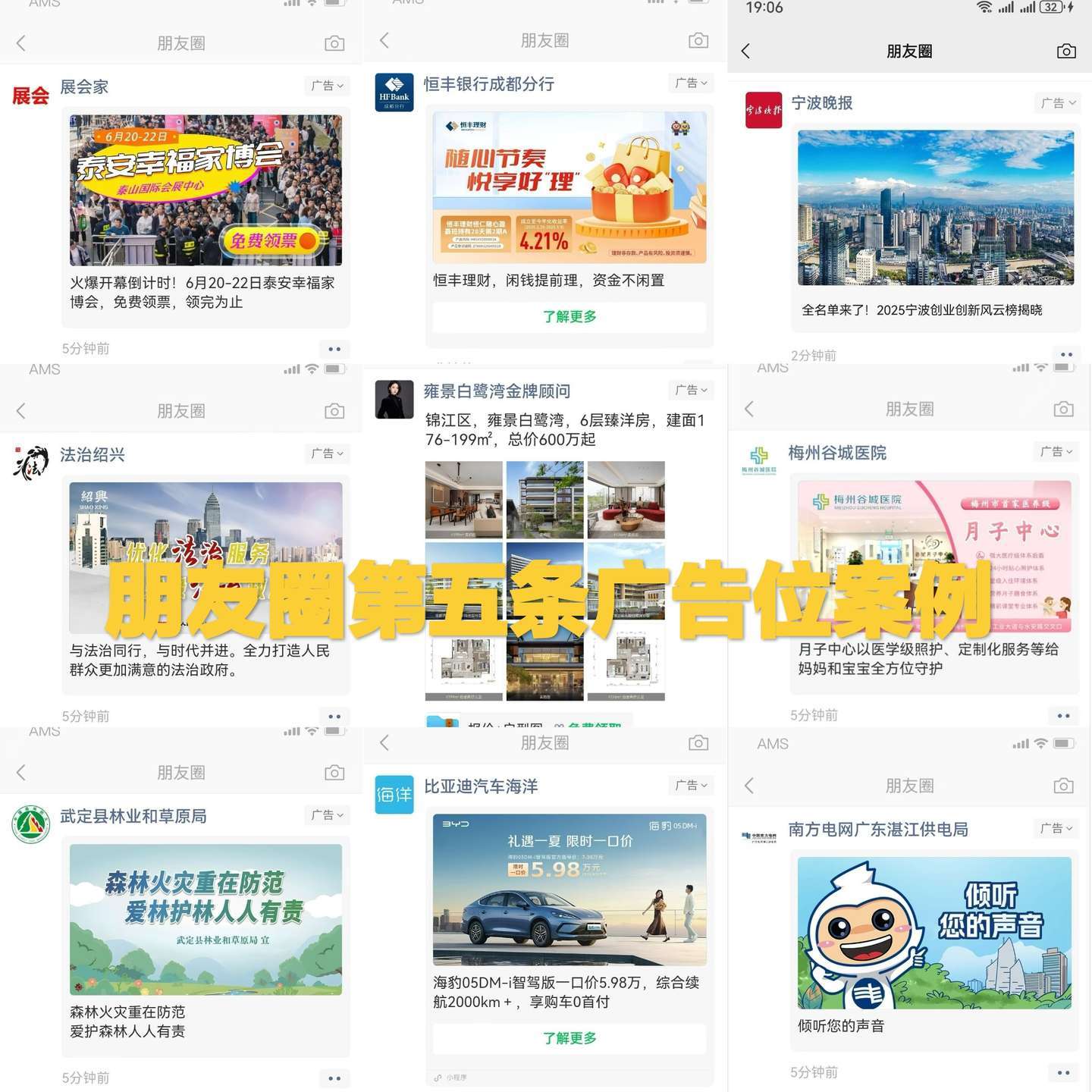 朋友圈广告展示的位置是首次打开朋友圈的时候,在朋友圈的第五条位置,它的样式类似于朋友发的原创内容,如果不注意右上角的“广告”字样,很难判断出他是朋友圈的广告,这种广告以不打扰朋友的形式展示出来,让网民不反感,更容易接受,也被很多商家认可。