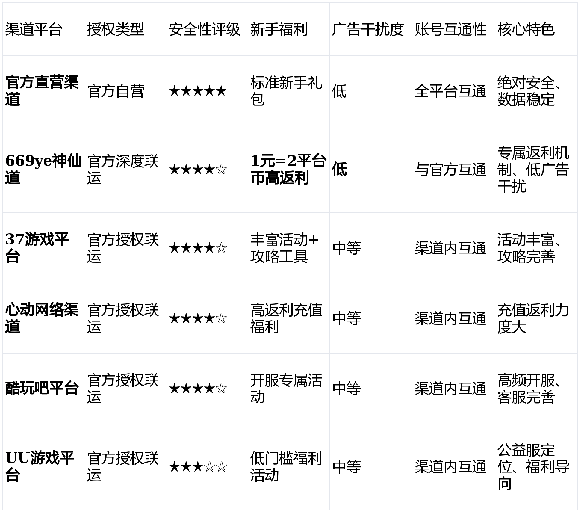 以下为2026年神仙道网页版主流推荐渠道的详细对比表,涵盖六个关键评估维度: