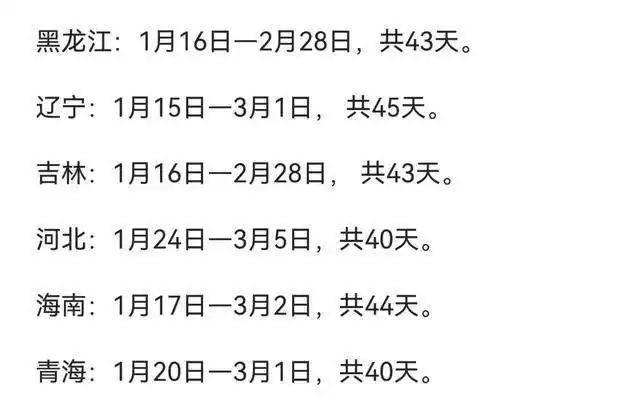 这次寒假时长的差异,说出来你可能都不信——最长的能放45天,最短的只有25天,足足差了20天,相当于小半个月的时间。