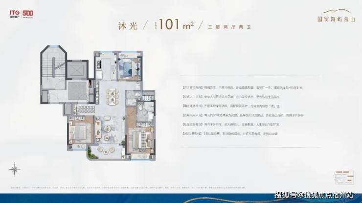 除了叠墅外,全社区仅4幢建面约101㎡沐光全景小高层,通过前瞻排布,几乎做到了户户景观无遮挡。