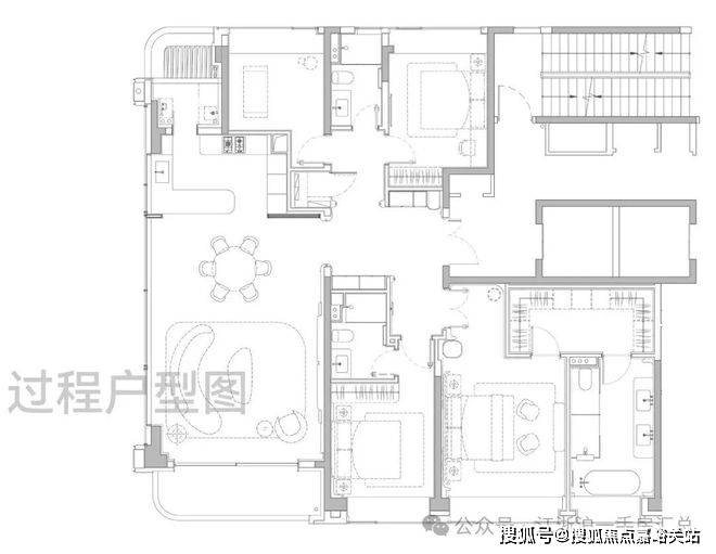主卧大套房设计带超大主卫和衣帽间,面积约50㎡,尺度感与市面上近300㎡的顶豪拉平。