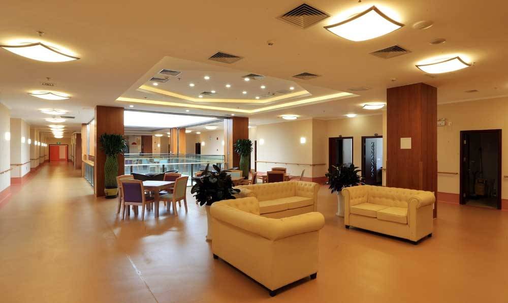 除了标准化的居住护理区,园区还精心设置了医务室、运动康复区、公共活动区、屋顶露台等公共空间。医务室为老人提供日常医疗服务,运动康复区配备专业康复器材,帮助老人进行康复训练;公共活动区是老人聊天、娱乐、互动的好去处,屋顶露台则为老人提供了一个晒太阳、赏风景、放松心情的私密空间,茶余饭后,老人可以在这里漫步、聊天,感受户外的新鲜空气。