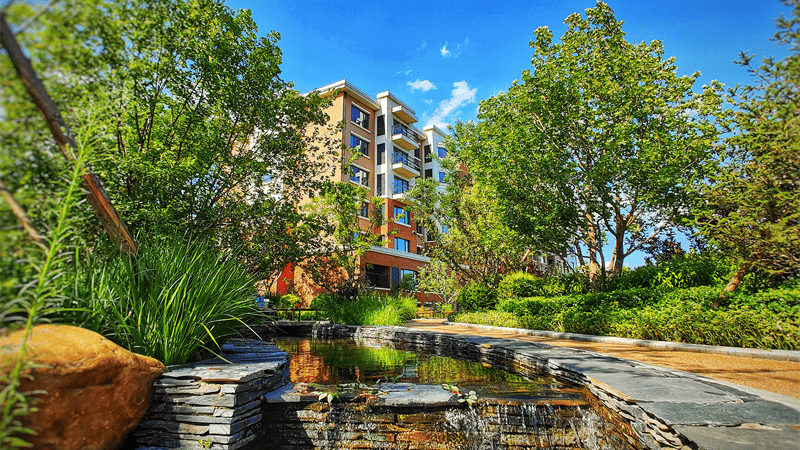 大家的家北京朝阳城心社区4000平米室外庭院采用纯日式风格,园林小品、健身器材、步行走道、露天凉椅错落有致,绿植繁茂、景致清幽,仿佛置身日式园林,闹中取静,给长辈一片静谧的休闲天地。长辈日常可以在庭院中散步、品茶、聊天、晒太阳,感受自然之美,舒缓身心,告别城市的喧嚣与浮躁。