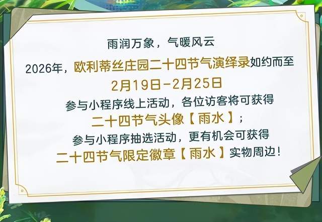 2026-02-19棋牌平台,棋牌官网网站,棋牌游戏APP下载2026 欧利蒂丝庄园雨水篇活动即将上线,一边是人人可拿的免费头像,一边是严格筛选的老玩家限定抽奖,我们站在玩家视角把规则、奖励与参与成本说清楚,不吹不黑,帮你判断值不值得花时间参与。