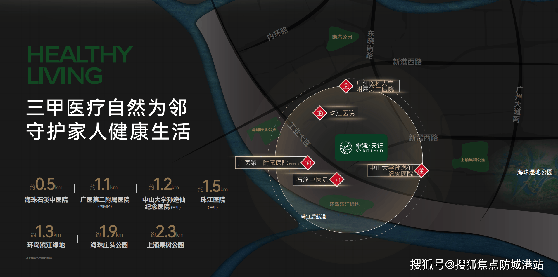 在中建天钰周边1.4公里范围内,坐落着中山大学孙逸仙纪念医院(南院区)和广州医科大学附属第二医院西院区两家著名的三甲医院。这两家医院均为国内知名的综合性医疗机构,拥有雄厚的技术力量、先进的医疗设备和经验丰富的专家团队。