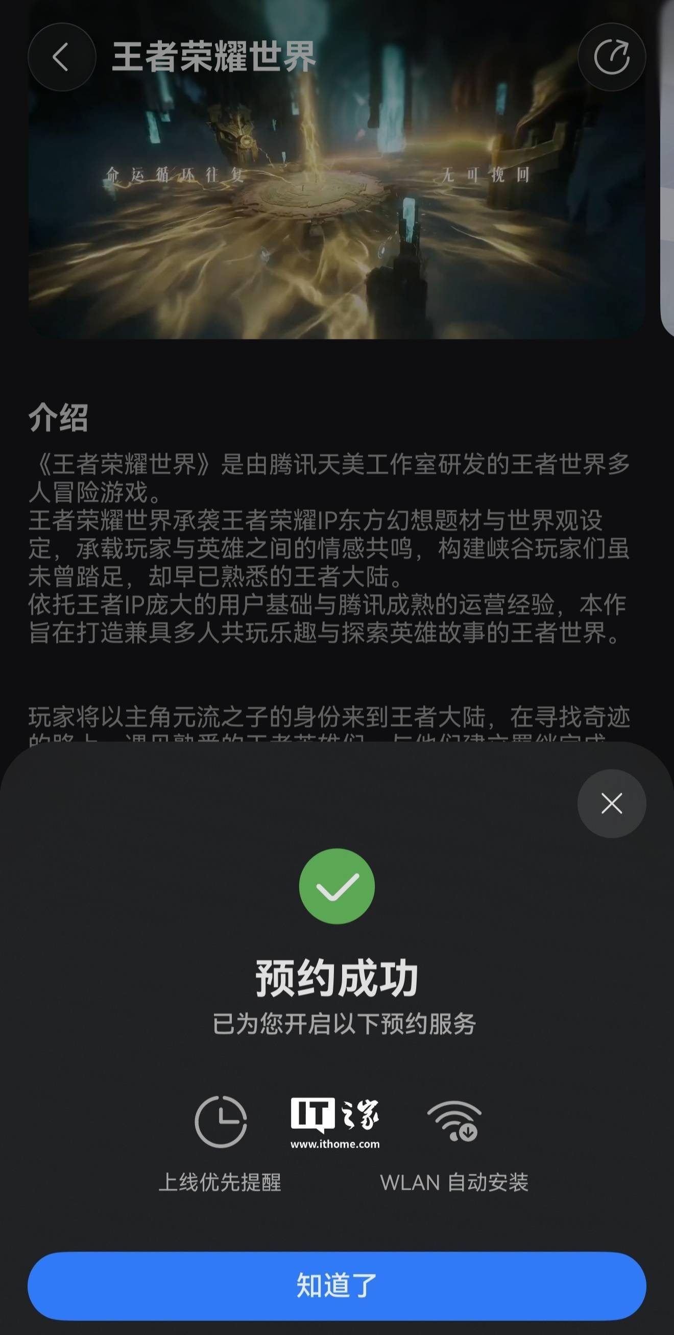玩家从华为游戏中心点击预约后,后者将提供游戏上线优先提醒和 WLAN 自动安装服务。