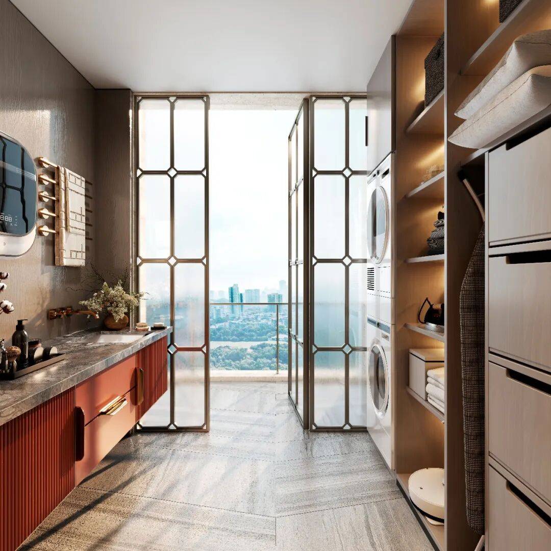 玄关揽景设计,让入户的瞬间便能感受到惬意的阳光,独立家政间,合理划分功能区域,让家务打理更轻松高效。