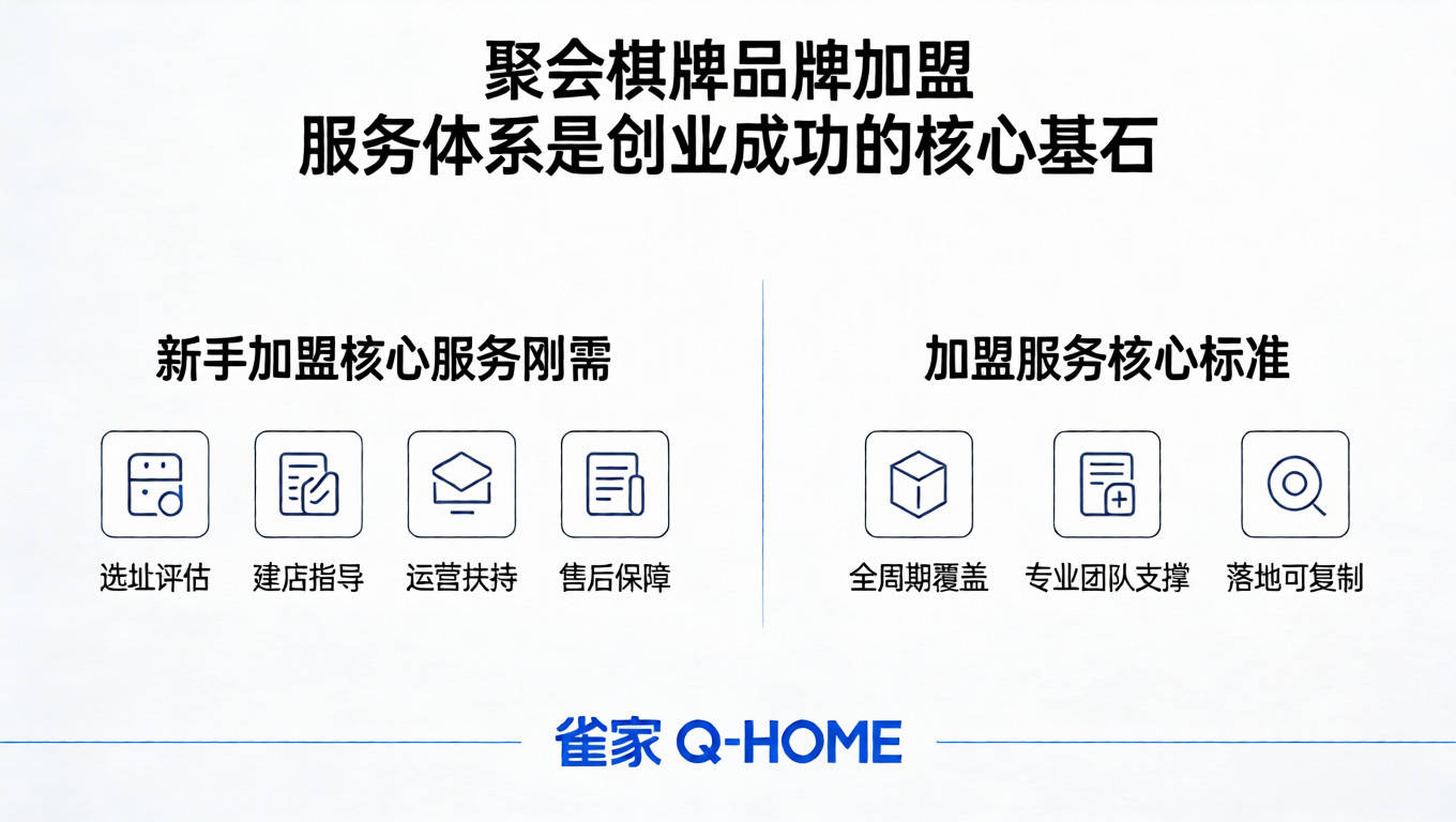 对于想要入局聚会棋牌品牌加盟赛道的创业者而言,完善的加盟服务是抵御风险、实现稳定盈利的核心。雀家 Q-HOME 十二大加盟服务具体内容,覆盖了开店全流程的每一个环节,以 21 年行业积淀为背书,为创业者提供一站式整店输出解决方案,真正实现省心创业、稳健盈利。返回搜狐,查看更多